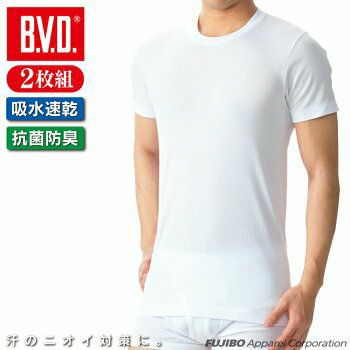 2枚組 B.V.D. 吸水速乾 抗菌防臭 クルーネック半袖Tシャツ ドライ&デオドラント M/L/LL EY613TS-2P