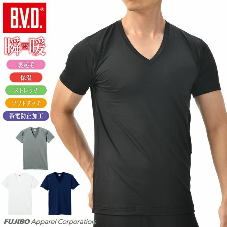 BVD 瞬暖 裏起毛 VネックTシャツ【M/L/LL】GR074