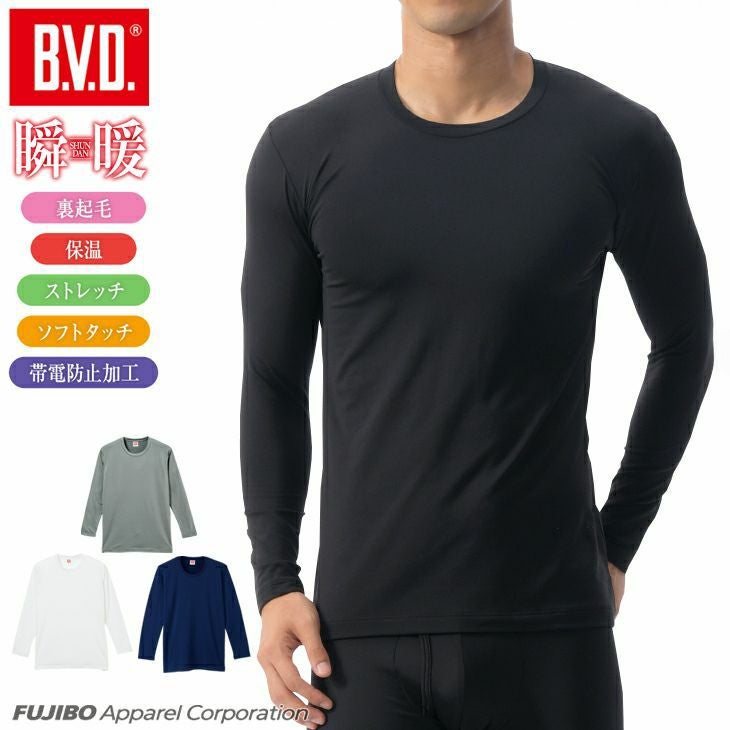 BVD 瞬暖 裏起毛 クルーネック長袖Tシャツ (M/L/LL) GR077