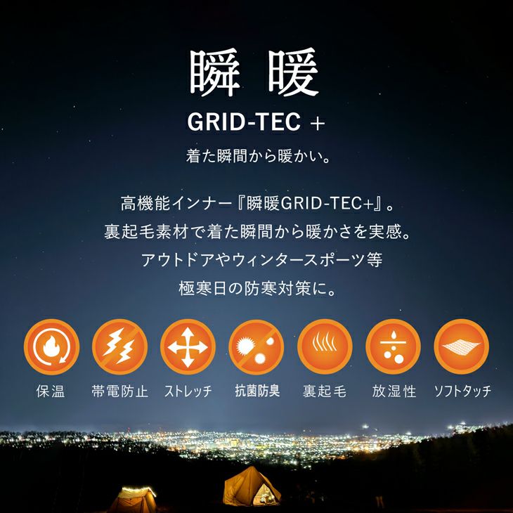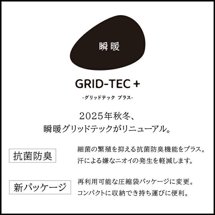 他の画像を見る 着た瞬間から暖かい防寒インナー BVD 瞬暖GRID-TEC + 裏起毛 グリッドテックプラス 10分丈ボトム(M/L/LL)BAKU60EC 当店特別価格 ¥ 2,970 税込 カートに入れる お気に入りに登録する